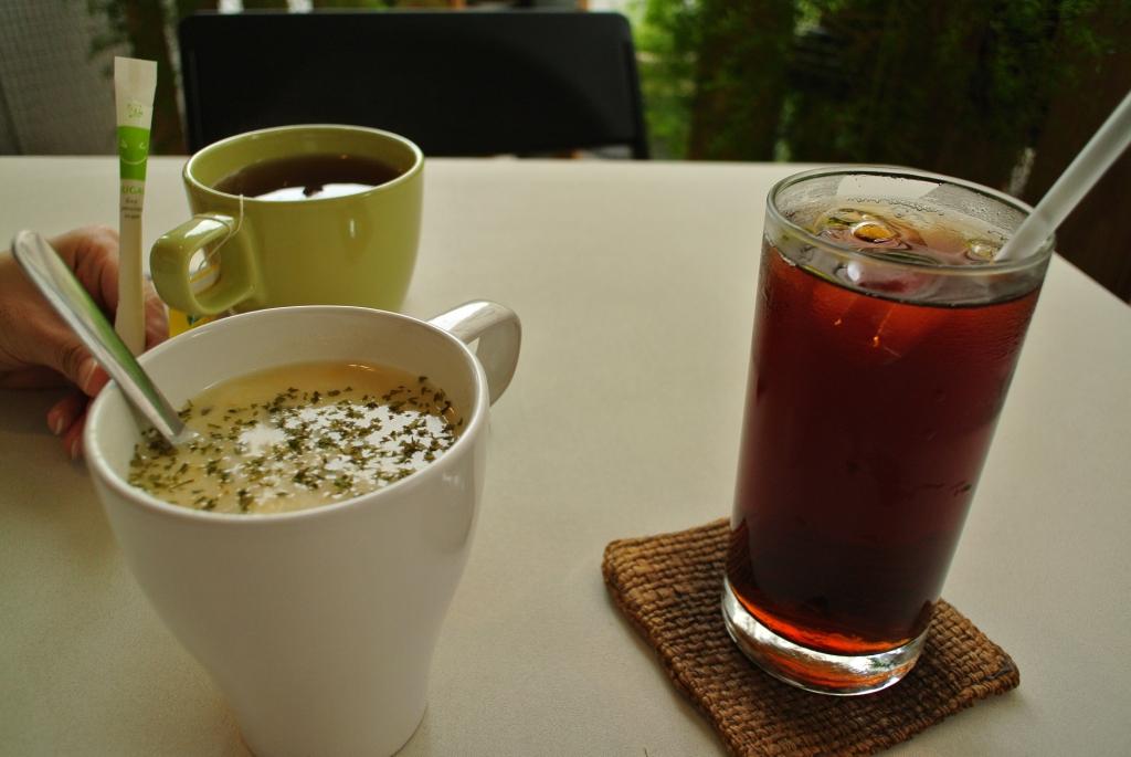左邊兩杯是+73元的濃湯及紅茶